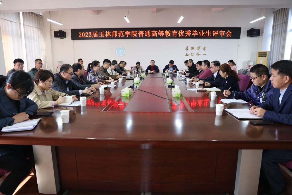 3月2日上午,学校在东校区行政楼第四会议室召开2023届玉林师范学院普通高等教育优秀毕业生评审会。学校党委副书记韦广雄出席评审会,学校学生工作领导小组全体成员参加会议。