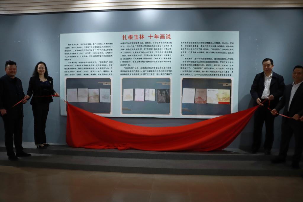 我校校长李伟中为开幕式致辞。他表示,自党的十八大以来,我校玉林历史文化“画说团队”积极响应习近平总书记关于“广大科技工作者要把论文写在祖国的大地上”的号召,积极探寻和挖掘深藏于民间的优秀传统文化。目前,“画说团队”已经成功地走出了一条如何将玉林优秀传统文化创造性转化、创新性发展的新路子,先后出版的《玉林画 话玉林:线条下的文化符号》《千年巡旅 画说玉州》《锦山秀水 大美陆川:线条游走下的山水文化》《千年白州 画说客家:线条下的博白客家文化》《千年古韵 画说容州》《潮涌北流 画说铜州》《凤舞鹿峰 画说兴业》《南流海丝 画说福绵》等“画说系列”丛书,学术性、可读性和收藏价值兼备,开创了钢笔绘画与历史文化脉络梳理范例,开创了首个实现地级市县市区全覆盖的先例,是地方特色文化推介的精品,在学术界和社会上产生了较大影响。新时代,新征程,在党的二十大精神指引下,“画说团队”将不忘初心,牢记使命,踔力奋发,创造更多的文化精品,将八桂大地的优秀传统文化更多、更好地发扬光大,为中华文化现代化高质量发展增添美丽华章。