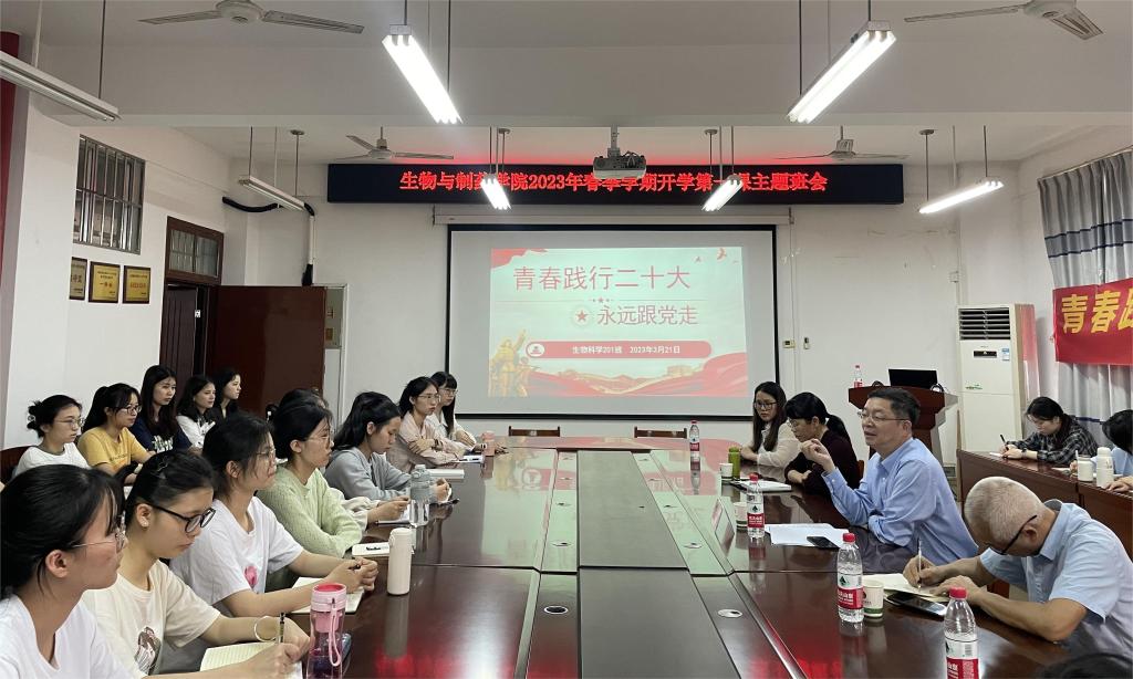 3月21日下午,学校党委常委、宣传部部长徐一周深入生物与制药学院生科201班开展“开学第一次主题班会”活动。该院党委书记、专职组织员以及该班班主任、全体学生参加此次班会。
