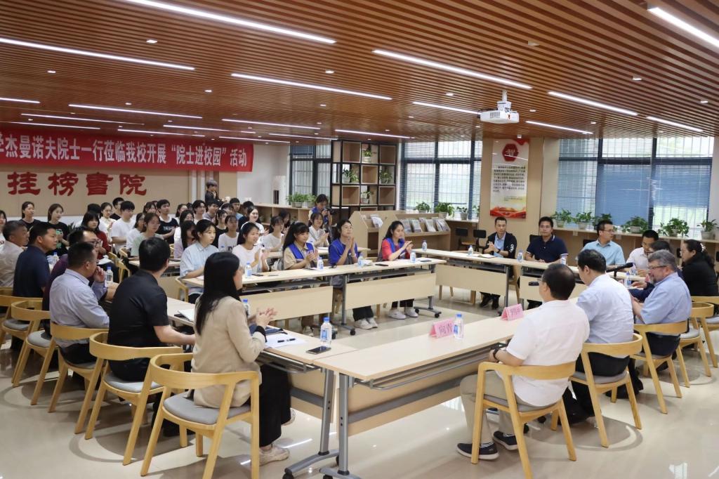“院士进校园”主题活动由我校科研处、科协、学生工作部(处)联合组织,旨在传播科学思想,弘扬科学精神,引导广大青年学生和老师爱科学、学科学、用科学,提升综合素养。