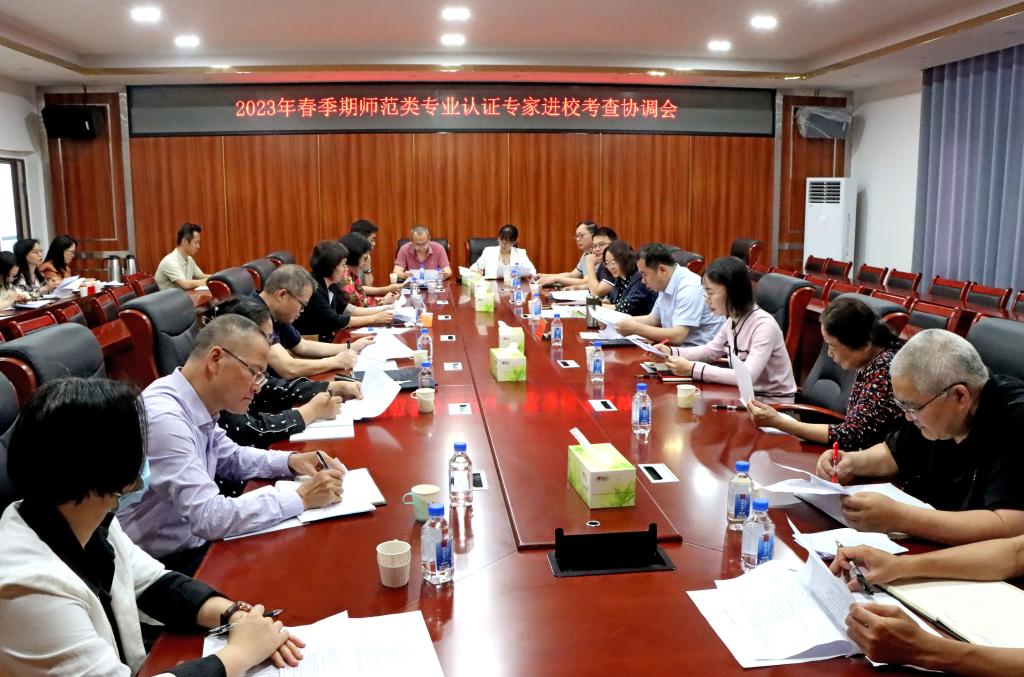 5月10日上午,学校2023年春季期师范类专业认证专家进校考查协调会于东校区新民楼B501召开。校长李伟中出席会议,教务处、外国语学院班子成员和英语专业负责人以及学校专业认证联络组组长参加会议。