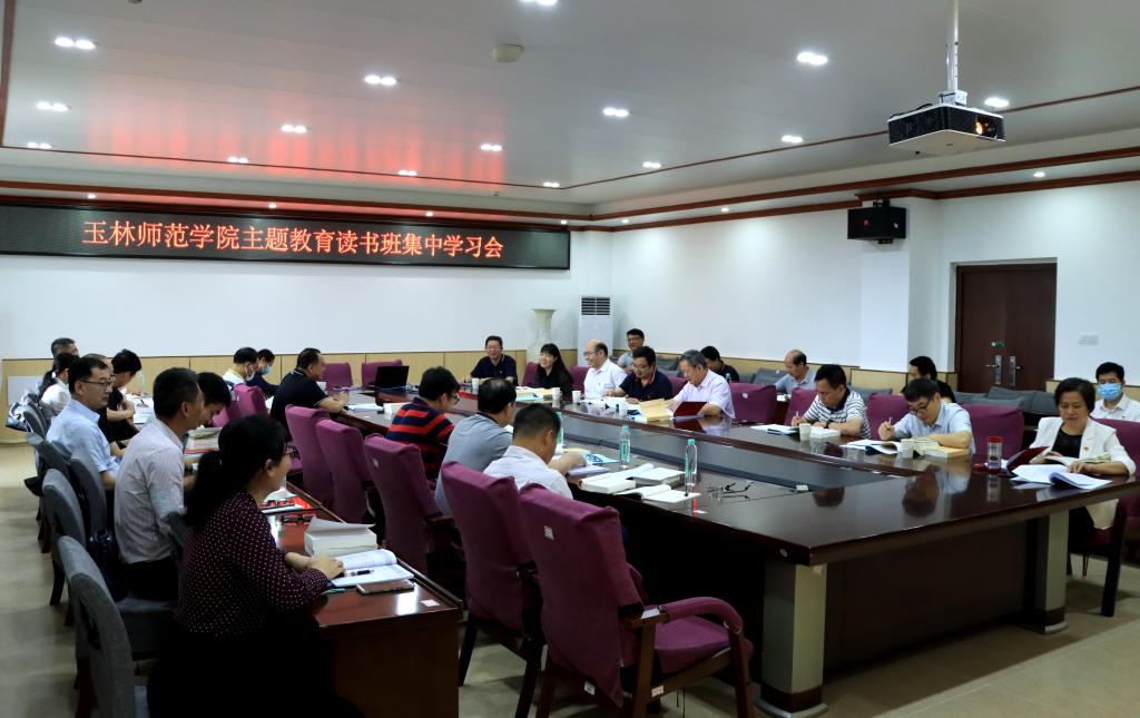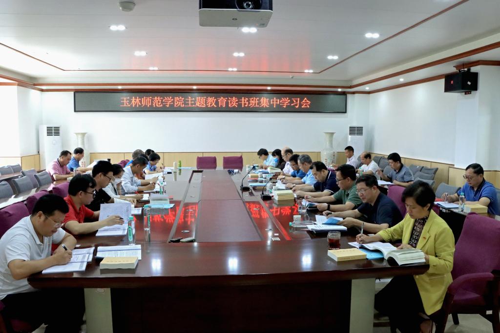 “咚——”伴随钟楼整点报时的声音,“刷刷”的翻书声也充满了整个会议室。在学校主题教育领导小组组长、党委书记唐仁郭的带领下,全体学校党委委员、二层机构党委(党总支书记)聚集于此,全身心投入《习近平著作选读》第一卷、第二卷,习近平总书记关于教育的重要论述(2021年-2023年)和习近平总书记对广西“五个更大”重要要求的学习中来。