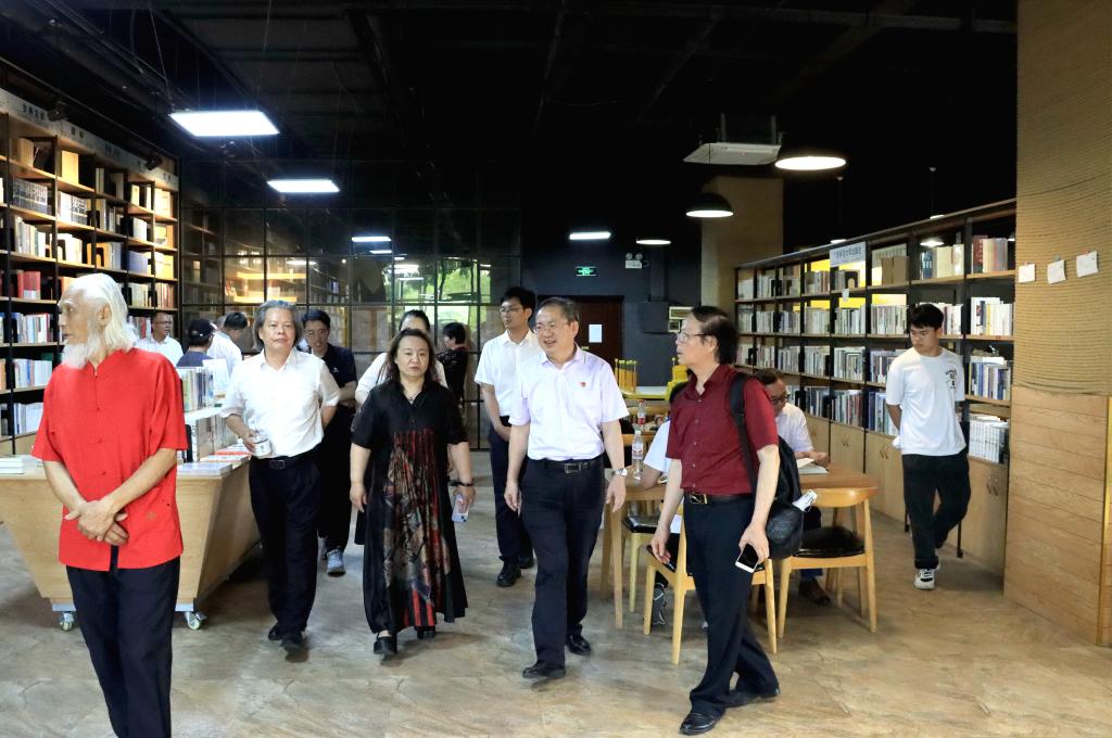 在实训楼,宋忠阳参观了我校大学生创新创业训练计划项目“艺咖·学吧”以及实训楼二楼的艺术工坊。美术与设计学院相关专业老师对文创产品、剪纸艺术、芒编技艺、木工工艺等进行了解说,并对学院各专业的特色和发展进行了介绍。参观间隙,宋忠阳一行与美术与设计学院教师代表在实训楼206展开了座谈,大家畅所欲言,热烈讨论,深入交流。参观人员对工坊艺术产品的创新以及文化的传承给予了赞赏。