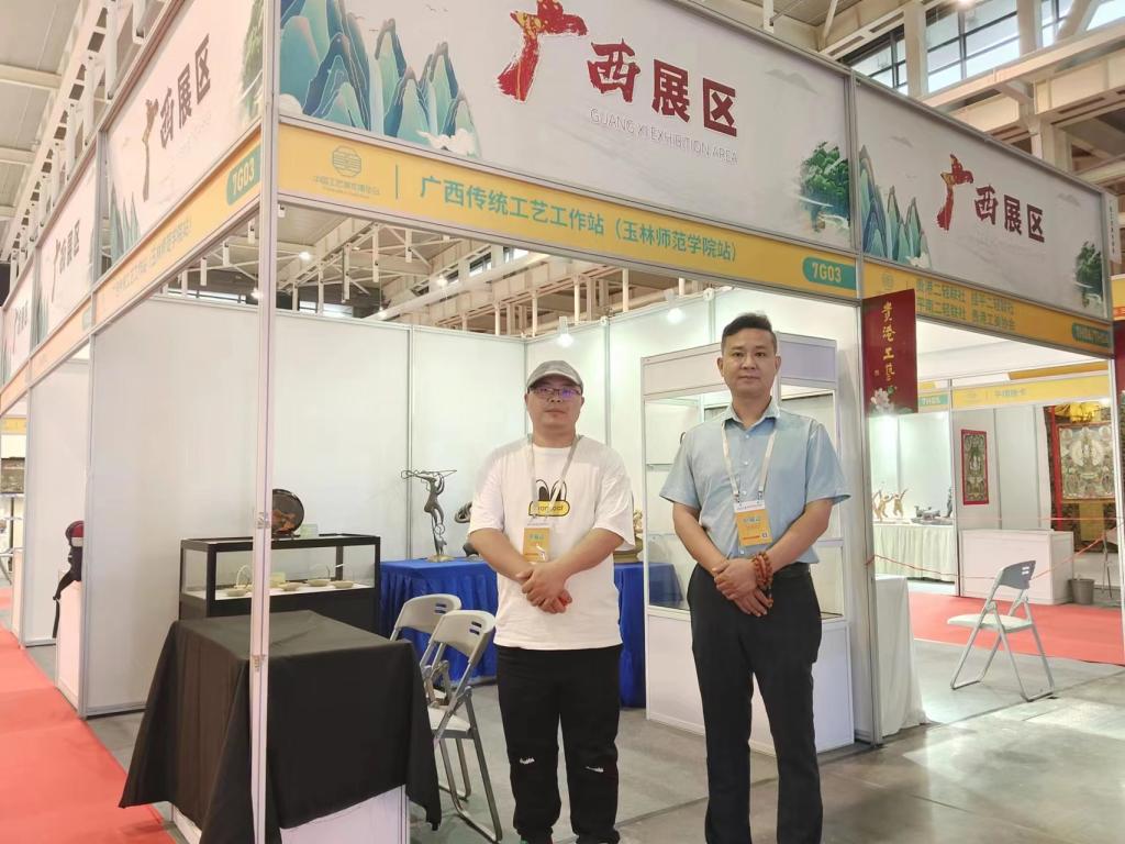 5月26日-29日,由中国轻工业联合会主办的第三届中国工艺美术博览会在南京国际博览中心举行,我校美术与设计学院首次组织7位教师共计8件(组)优秀作品参加现场展示和奖项评选,作品涉及漆器、陶瓷、金属、玻璃和芒编等工艺,其中荣获百花杯银奖1项、文创设计大赛银奖1项。