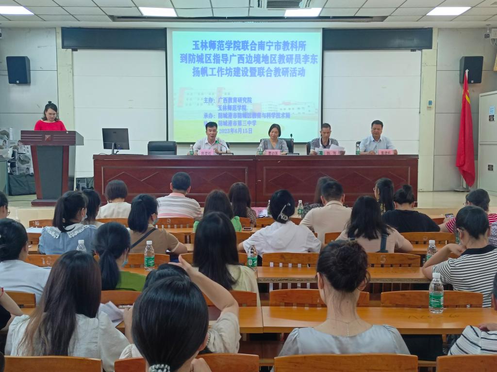 为贯彻落实广西壮族自治区人民政府办公厅《关于印发〈广西边境地区教育提升工程实施方案〉的通知》(桂政办发〔2022〕22号)精神,进一步提升边境地区基础教育教学质量及教研员业务能力,6月15至16日,我校联合广西教育研究院、南宁市教育科学研究所到防城港市防城区和东兴市开展“结对帮扶”联合教研活动,边境英语组“结对帮扶”专家团队以开展专题讲座、旁听点评示范课、交流座谈等方式助力推进边境地区的教育教学质量、教研员能力及教师素质的提升。