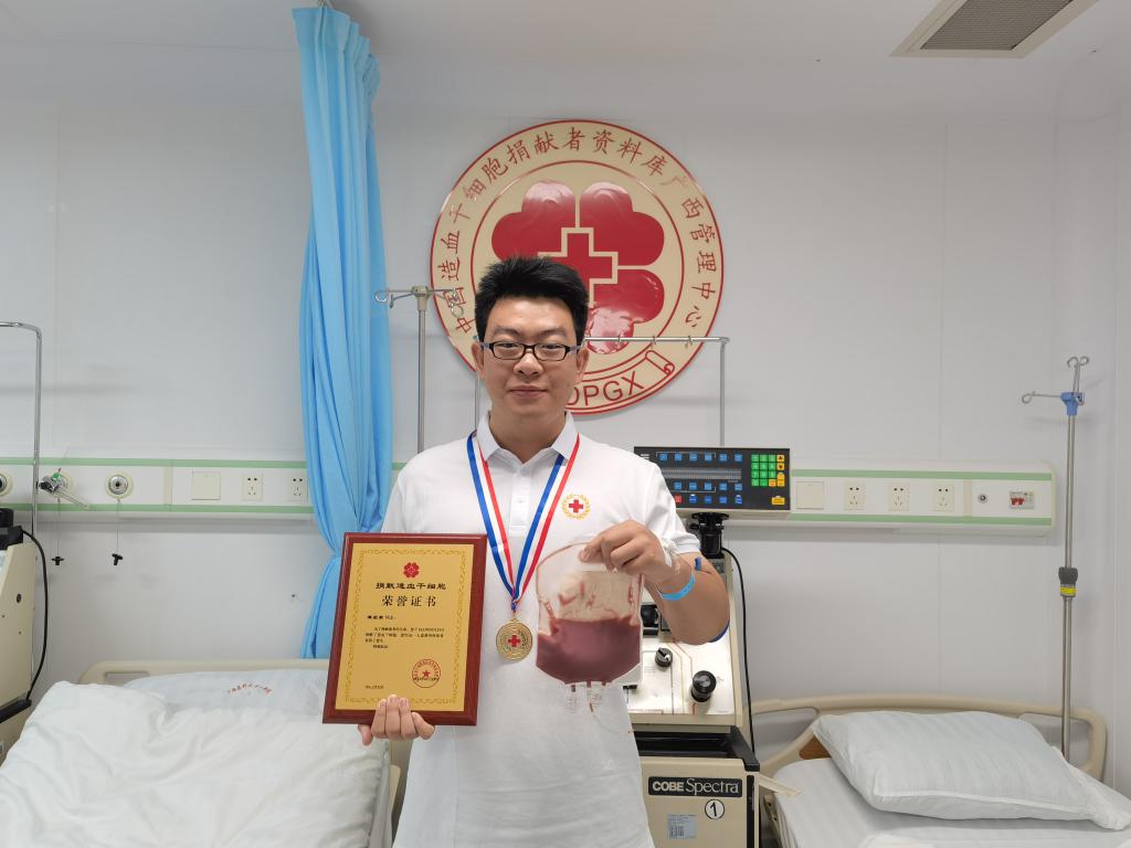 “用爱心让生命延续。”用爱心富饶的部分,抵挡迎面而来的风,用善意传递的本质,守护健康生长的路。近日,教育科学学院2017级毕业生谭堃灏成功捐献造血干细胞的事迹在该校师生中产生广泛影响,谭堃灏成功捐献造血干细胞混悬液约200毫升,成为中华骨髓库第15315例,广西第541例,梧州市第21例非亲缘造血干细胞捐献者。