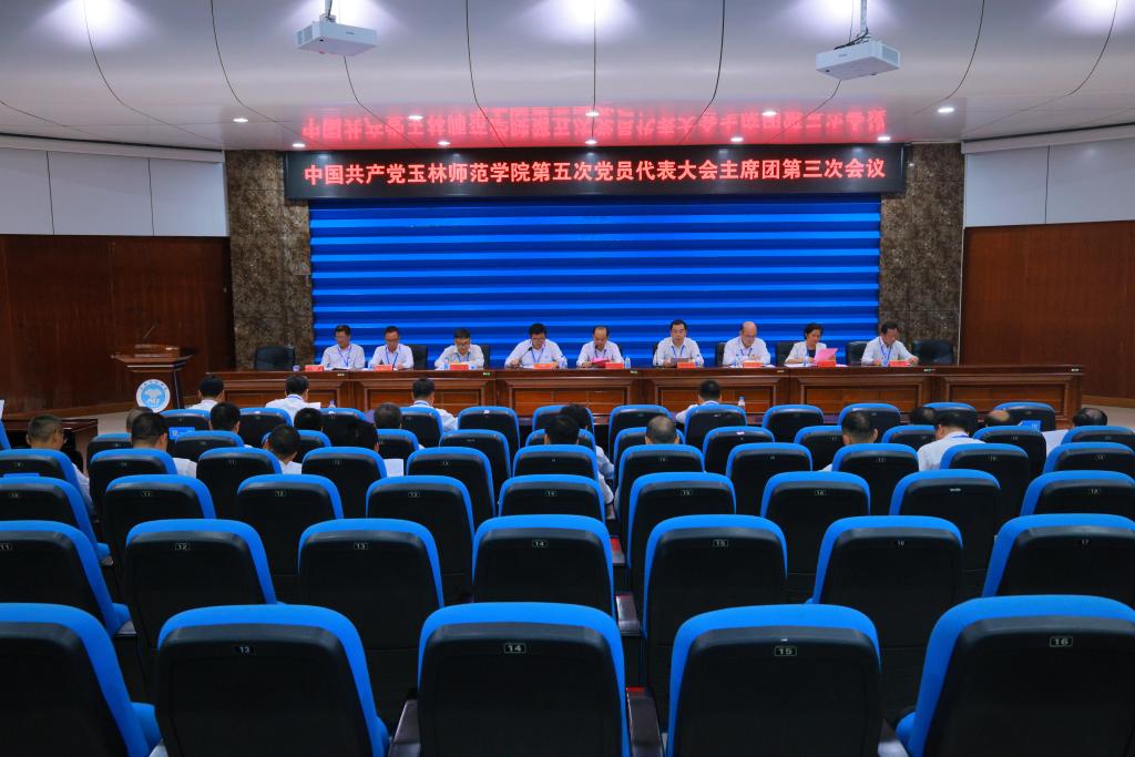6月30日下午,中国共产党玉林师范学院第五次党员代表大会主席团在东校区学术报告厅召开第三次会议,主席团成员,大会秘书组、组织组负责人参加会议。学校党委书记李清先主持会议。