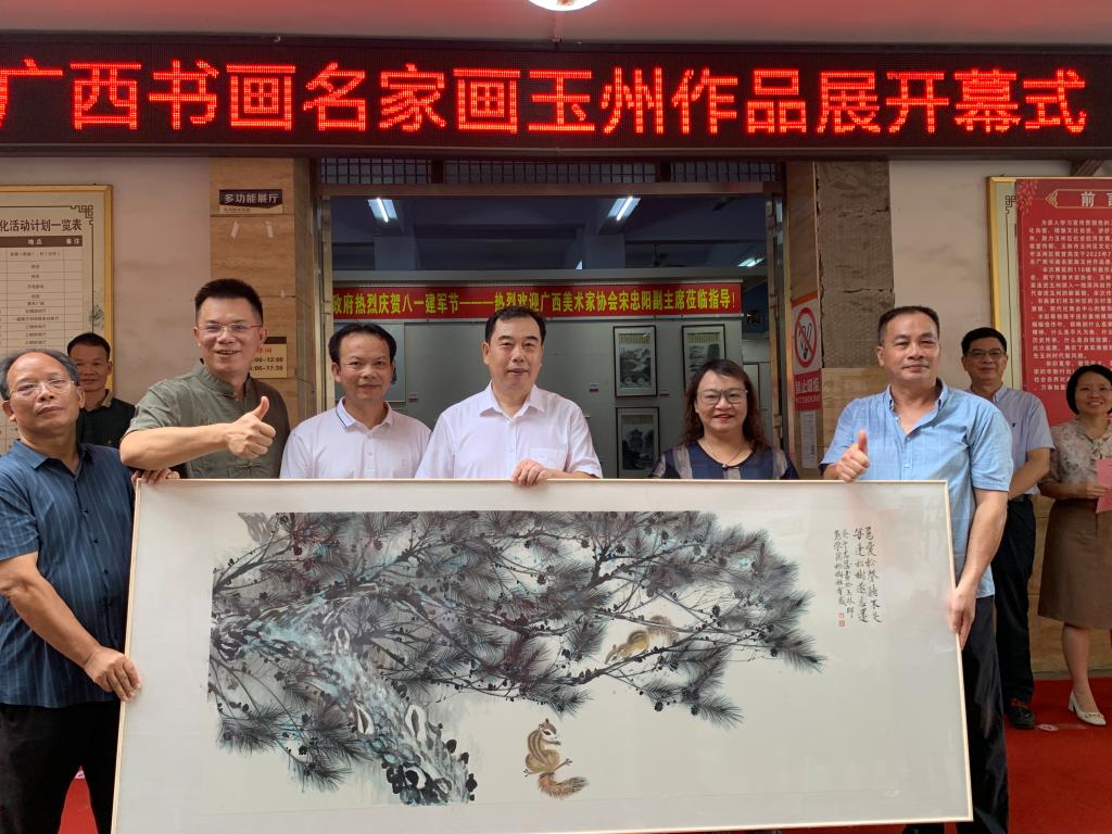 7月31日上午,学校校长李伟中专程前往玉林市玉州区文化馆,参加广西书画名家画玉州作品展开幕式并参观作品展。广西美术家协会副主席宋忠阳,玉州区党委常委、宣传部部长乔鹏,玉州区副区长周慧等领导同志一同参加活动。