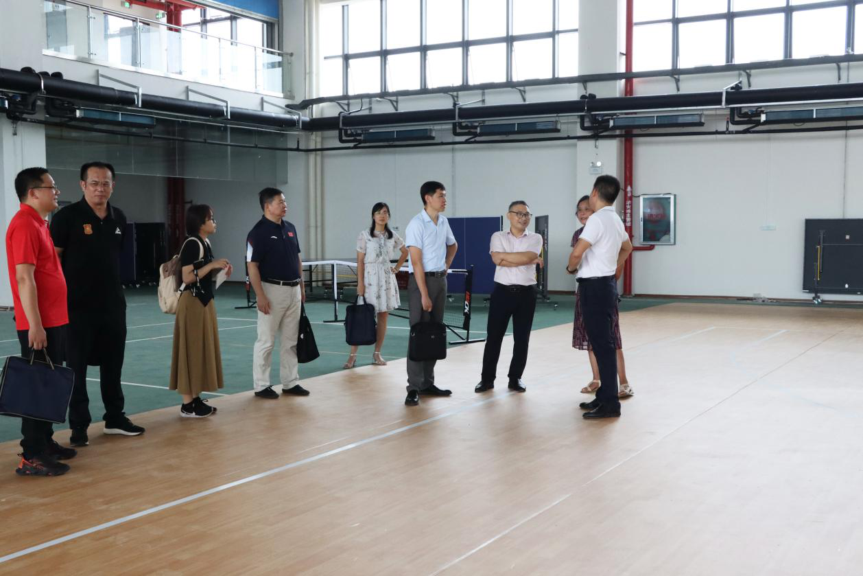 8月23日下午,共青团广西区委副书记、自治区执委会综合协调部副部长谢建伟等自治区体育工作综合督查组成员一行7人到我校开展督查工作,实地考察我校新体育馆、综合训练馆建设情况。