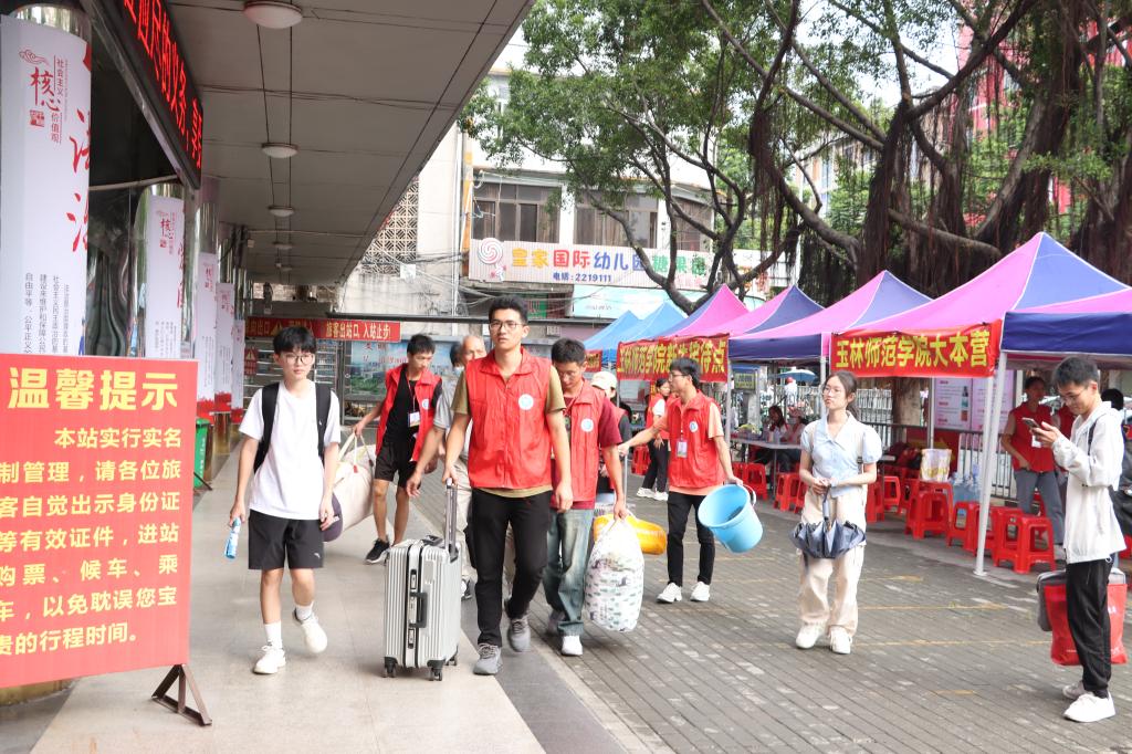 又是一年迎新时。9月1日起,我校全体师生共同迎接2023级第一批新生的到来,各接待点迎新工作火热开展。机场、火车站、汽车站的志愿者们举着醒目的指示牌,热情欢迎来自五湖四海的新同学加入玉林师范学院大家庭。学校大门正前方“热烈欢迎2023级新同学”的横幅映入眼帘,校园里洋溢着喜迎八方学子的浓厚氛围。新生们怀揣着梦想,即将在玉林师范学院开启人生新征程。