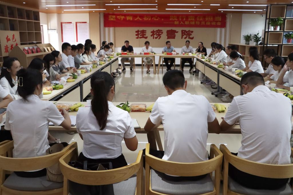 为进一步加强辅导员队伍建设,帮助和引导新入职辅导员尽快转变角色、明确岗位职责、提升育人能力,9月8日上午,我校在东校区梅园社区挂榜书院召开“坚守育人初心,践行责任担当”新入职辅导员座谈会。学校党委常委、副校长庞国萍出席座谈,老辅导员代表以及36位新入职辅导员参加座谈。