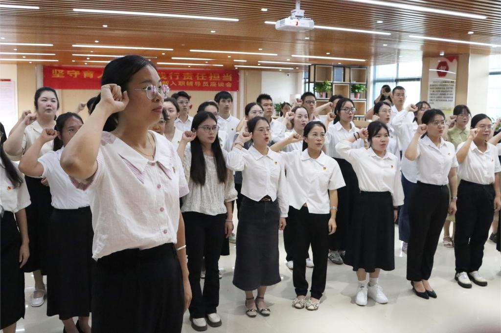 最后,全体新入职辅导员庄严宣誓,铿锵有力的话语和激昂振奋的字句,是他们坚守初心、勇担使命的决心与力量。