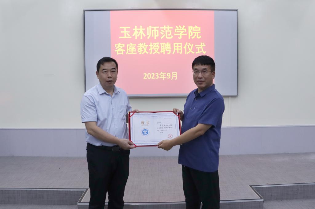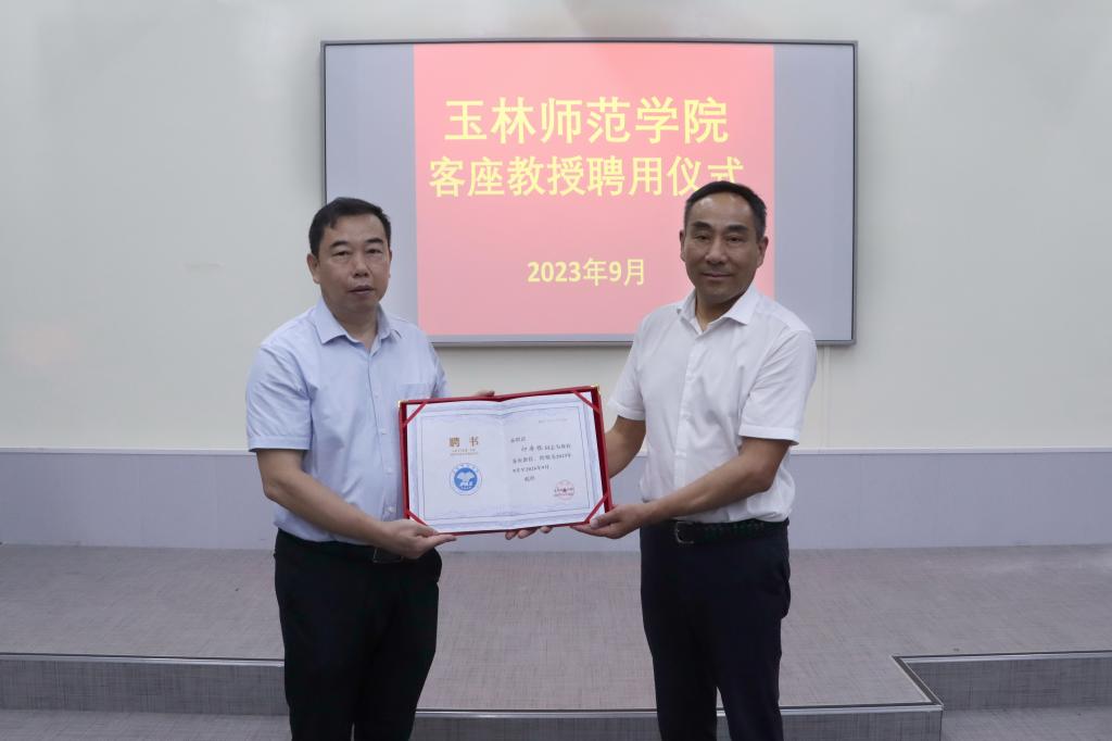 讲座前,李伟中为印寿根、李文江颁发了玉林师范学院客座教授聘书并致辞。李伟中表示,两位教授科研实力强、产学研经验丰富,希望他们结合自身经验指导我校教师开展产学研工作,希望我校教师加强与两位教授的沟通交流,进一步提升科学研究、服务地方产业发展的能力。李伟中强调,学校正在多途径加强教师队伍建设,努力建成一支既有质量教学水平高、研发能力强、社会服务能力强的师资队伍。