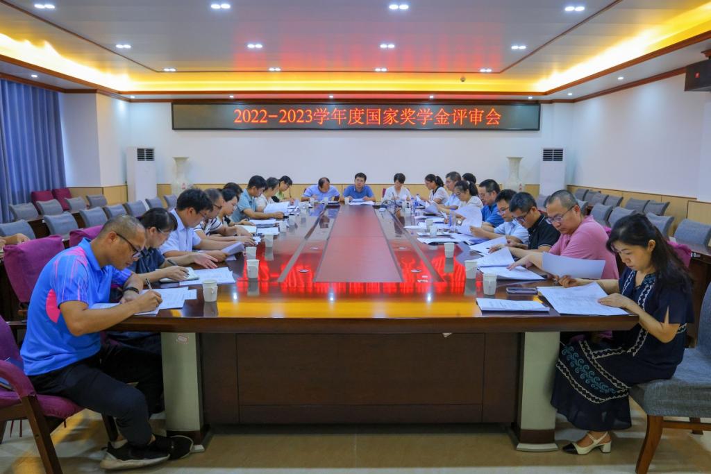 为进一步落实高等学校学生资助政策,切实做好我校2022-2023学年国家奖学金评审发放工作,近日,学校在新民楼C211会议室召开2022-2023学年度国家奖学金评审会、2023-2024学年度家庭经济困难学生认定评审会。会议由学校党委副书记韦广雄主持,国家奖助学金、自治区人民政府奖学金评审委员会委员,家庭经济困难学生认定工作小组成员,学校学生资助管理中心工作人员参加会议。