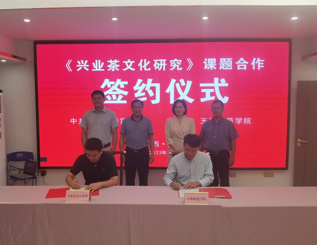 10月16日,我校与兴业县委宣传部合作项目《兴业茶文化研究》签约仪式在兴业书画院会议室举行。学校副校长石维有,兴业县委常委、宣传部部长周林,县委常委、副县长赵坚等领导出席仪式。学校及兴业县相关部门负责人、项目组成员出席并见证签约仪式。
