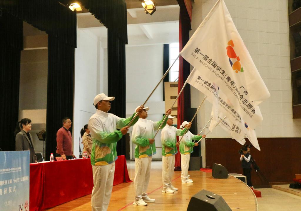 青春点燃梦想,体育铸就辉煌。10月20日下午,学校在东校区演示厅举行第一届全国学生(青年)运动会(玉林赛区)志愿者培训班暨玉师“小青芒”志愿服务团出征仪式,我校党委副书记韦广雄、团玉林市委、校团委相关负责人为玉师“小青芒”志愿服务队授旗。学青会师生志愿者右手握拳,共同宣誓,彰显奉献、友爱、互助、进步的志愿精神。