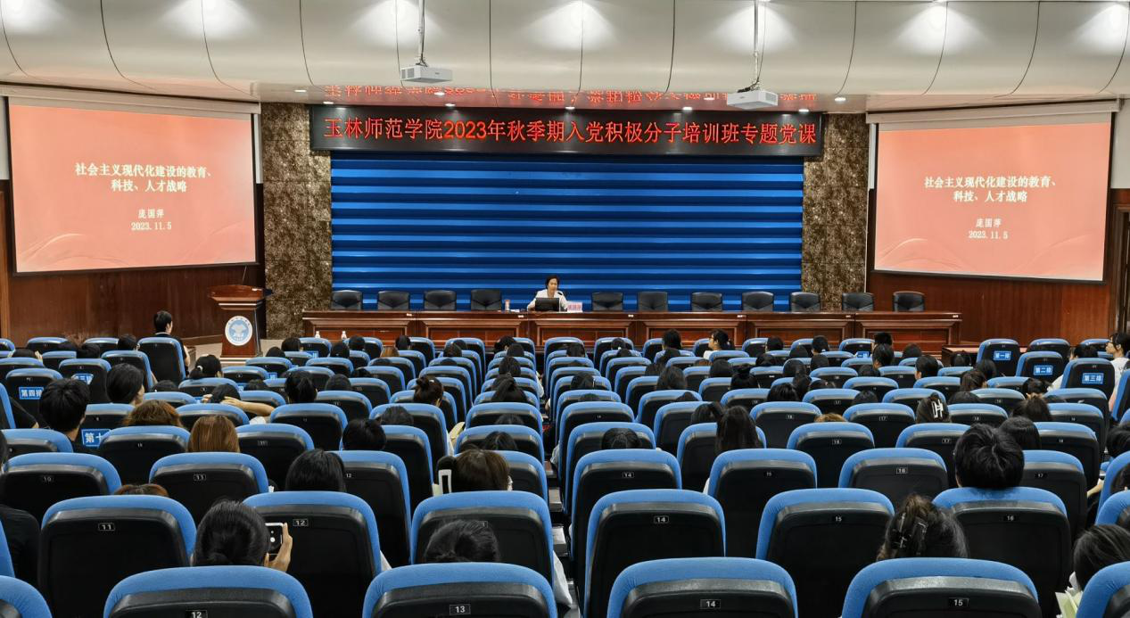 11月5日,学校党委常委、副校长庞国萍在东校区学术报告厅为2023年秋季期第二十五期入党积极分子讲授专题党课,外国语学院、文学与传媒学院、音乐与舞蹈学院、物理与电信工程学院第二十五期入党积极分子聆听党课。