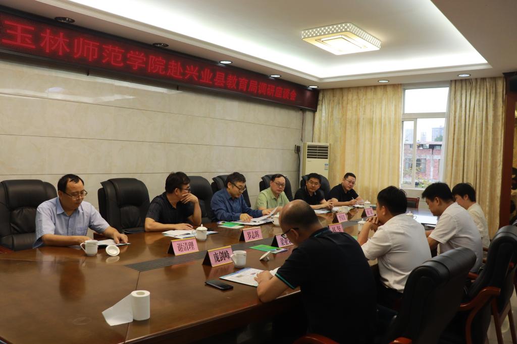 调研组在兴业教育局召开座谈会。刘永建介绍了我校的基本情况,详细分析了近几年招生(兴业生源)和兴业籍毕业生情况,重点介绍和推荐了我校2024届(兴业籍)毕业生,希望兴业教育局和我校共同努力,达到兴业籍毕业生“精准就业”效果,实现双赢。