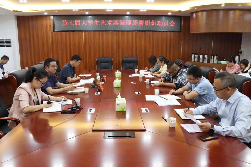 11月7日上午,学校在东校区新民楼B509召开第七届大学生艺术展演现场赛动员会,学校党委副书记韦广雄,学校党委常委、宣传部部长徐一周出席会议,校团委负责人、学校工作领导小组成员、进入决赛的各项目指导老师代表及相关二级学院副书记参与本次会议。
