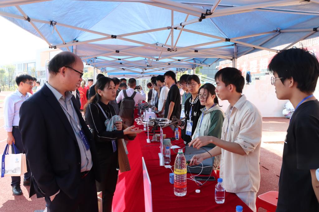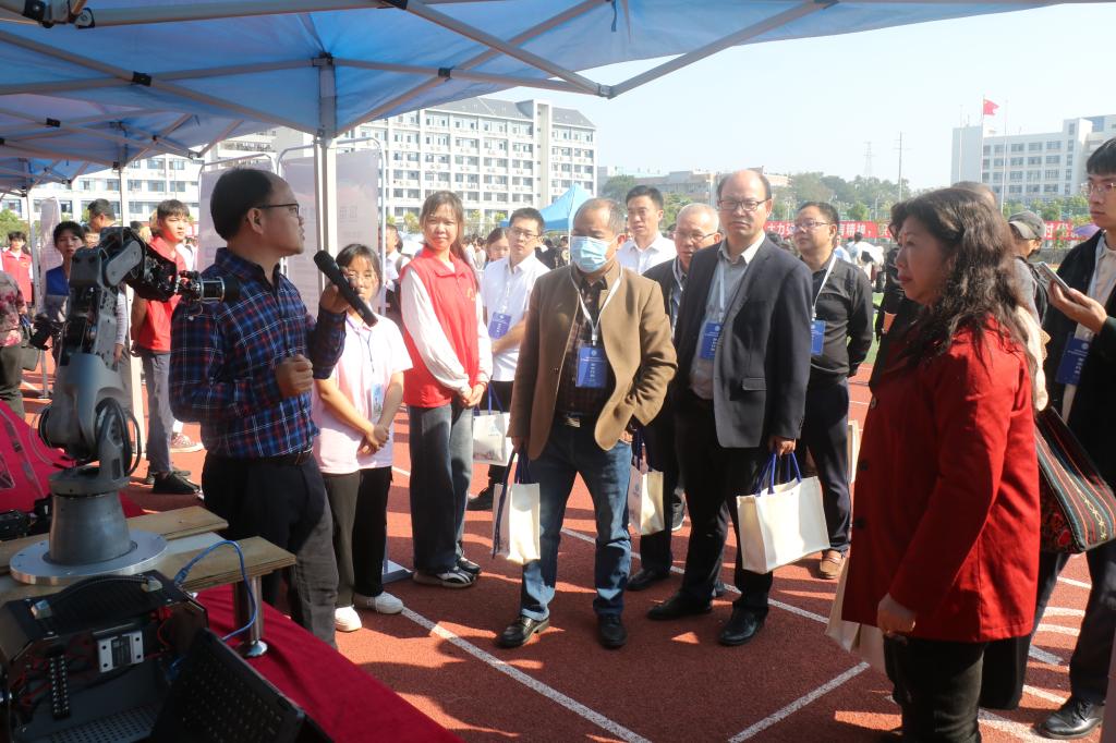 11月24日,学校第二届科技运动会在东校区西运动场举行。校长李伟中、副校长黄映然,相关职能部门、物理与电信工程学院、计算机科学与工程学院相关负责人,广西思洛普科技有限公司,深圳信盈达科技有限公司,新道科技股份有限公司等企业代表以及广西应用型本科高校联盟理事及参会嘉宾到场观摩。