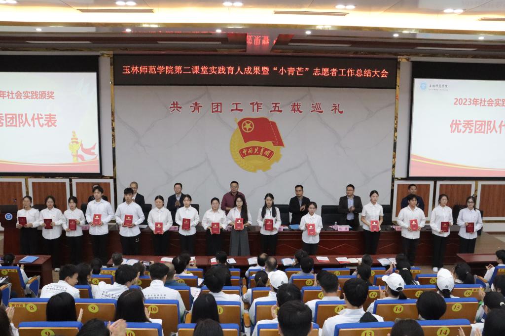 会上,学校团委负责人作题为《守正创新 挺膺奋进,以“五新”镌刻足迹——玉林师范学院第二课堂实践育人成果总结(2019-2023)》的报告,优秀单位代表和优秀志愿者代表依次上台分享社会实践成果及个人心得感悟,徐一周宣读了2023年社会实践表彰文件。会议为2023年暑期“三下乡”社会实践优秀社会实践团队、优秀组织单位颁奖。会议总结回顾了玉师“小青芒”的成长经历,纪念视频《“小青芒’的十二时辰》勾起了广大志愿者的美好回忆。玉林市团委相关负责人宣布了优秀志愿者玉林师范学院推荐建议结果。