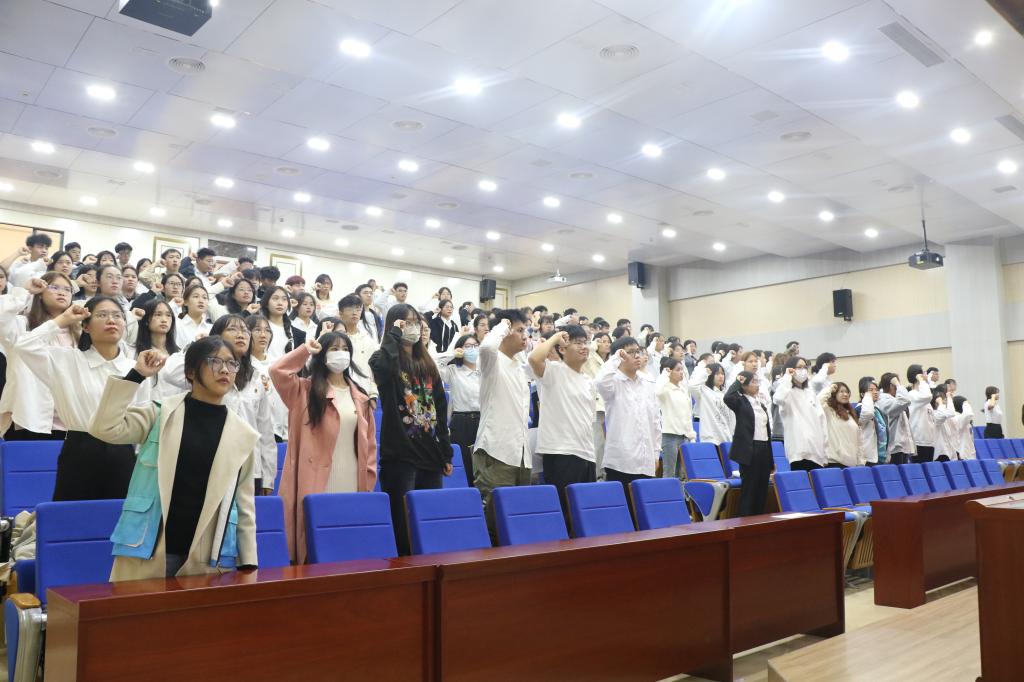 李清先为2023年新团员代表颁发了团员证,校团委主要负责人带领新团员进行入团宣誓。