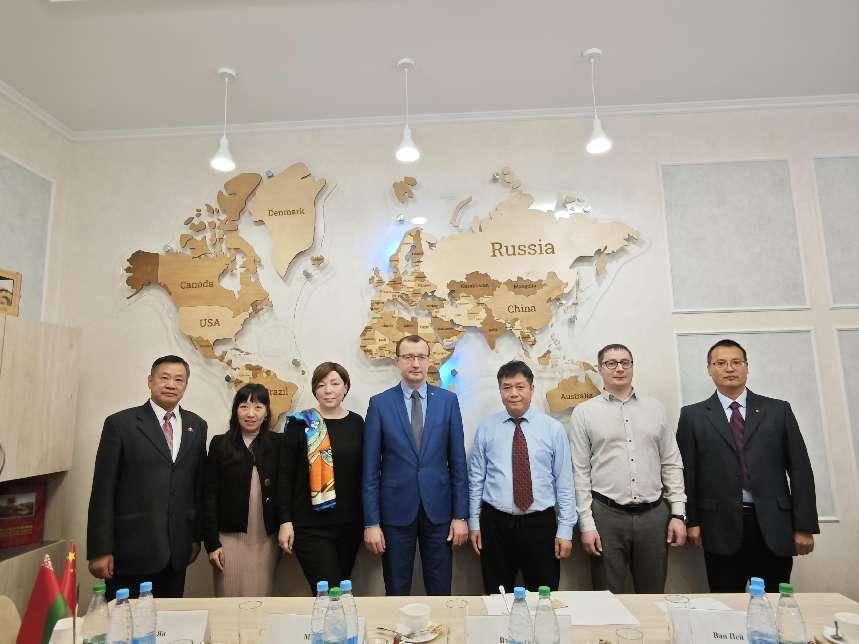 在白“工大”访问之日,由白方主管教学的第一副校长尤里.尼古拉奇客、外事办主任希尔帕特尔.谢维尔、工程和教育学院院长谢尔盖.博里塞维奇、职业教育学院院长安娜.罗曼诺娃共同接待。白方对机械、电子、计算机、物理和化工几大重点学科进行了一一介绍,我方也针对未来在师资、研究生的互换项目,以及重点学科的科研合作项目与白方进行了有深度的对接,并初步达成签署框架协议的意愿。