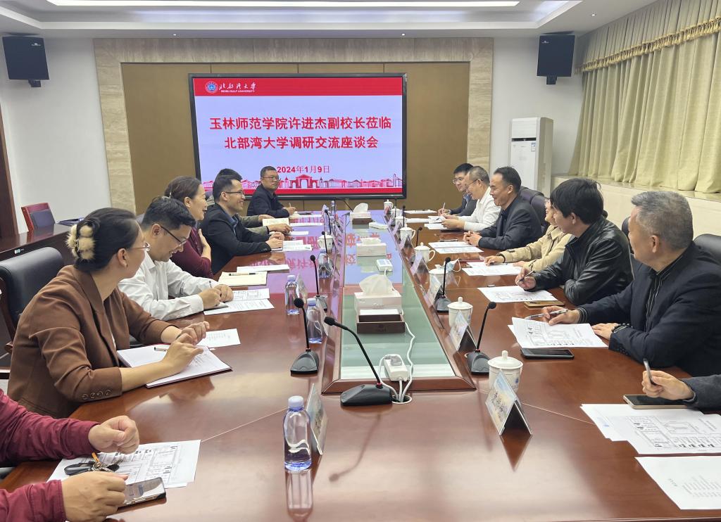 1月9日,学校副校长许进杰带领教务处、财务处、国有资产管理处、教育技术中心等单位的主要负责人赴北部湾大学交流。北部湾大学副校长尹艳镇、教务处、财务处、网络与教育技术中心、国有资产与实验室管理处等相关负责人参加座谈。