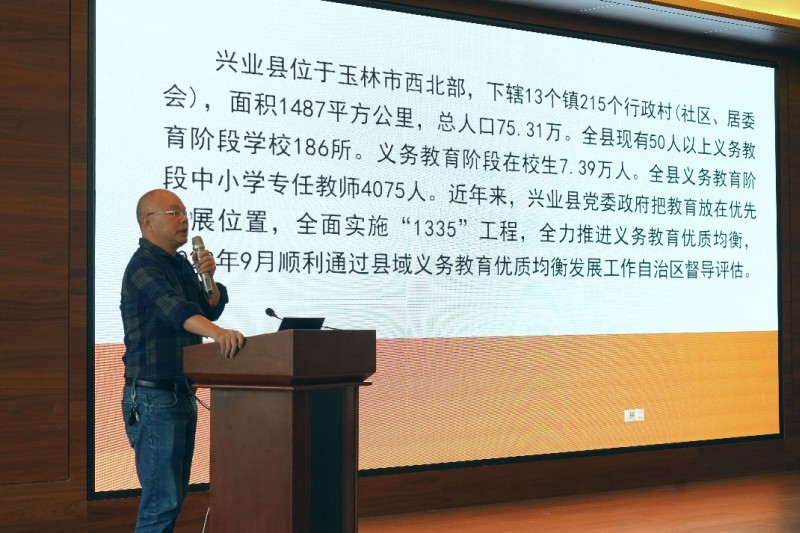 在经验交流环节,玉林市兴业县督导办、贵港市覃塘区督导办、梧州市万秀区督导办以及我校教育科学学院院长陈庆文教授分别作义务教育优质均衡工作进展经验交流介绍。