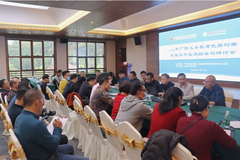 为进一步提高广西义务教育发展质量,推动县域义务教育优质均衡发展,1月11日,“2023年广西义务教育优质均衡发展水平监测指导与研讨会(贵港市、梧州市、玉林市)”在广西玉林顺利召开。本次会议由广西壮族自治区人民政府教育督导委员会办公室主办,玉林师范学院承办,我校党委常委、副校长刘永建教授出席会议。广西师范大学、南宁师范大学、河池学院及我校的专家代表和贵港、梧州、玉林各县(市、区)的教育局督导、基教、教研等部门负责人代表参加会议。