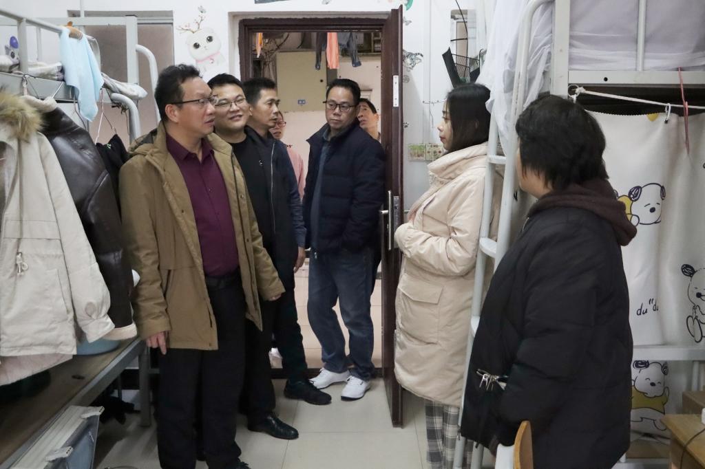 2月1日下午,学校党委常委、副校长石维有携学工处、国际交流处、保卫处及体育健康学院相关负责人前往兰园学生宿舍4、5栋走访慰问留校学生。