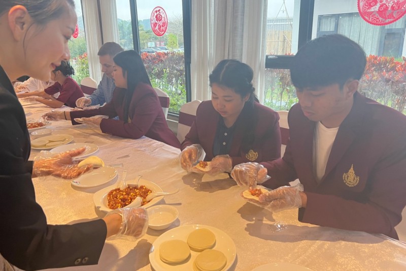 晚餐时分,中外师生共进“团圆饭”。一道“硬菜”给留学生们留下了深刻的印象,那便是他们亲手包的饺子。在一道道传统佳肴中,浓浓的中国年味印刻在留学生们心里。石维有表示,非常高兴能够与留学生们共庆这温馨的时刻。希望同学们在充分体验中国传统文化和节日氛围的同时,进一步加深对中国的认识和理解,加强中外文化交流互动,促进多国文化的交流互鉴,争当中外文化交流的友好使者。