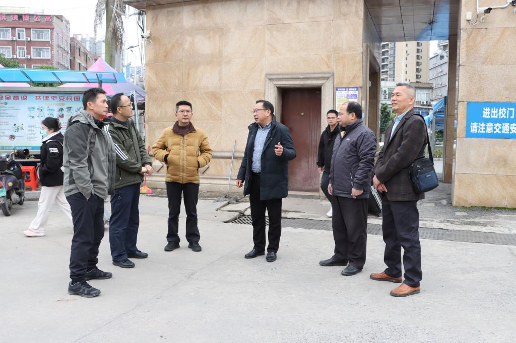 为进一步贯彻落实习近平总书记关于安全生产重要指示精神,坚决遏制校园安全事件的发生,营造好开学季的安全环境,3月2日下午,学校党委常委、副校长石维有率领保卫处、国有资产管理处、后勤基建处开展校园安全检查工作,重点对校门口环境及交通安全、尚文阁食堂食品安全、水电气安全、菜鸟驿站及其周边环境、交通安全、梅园特种设备安全及学生公寓维修维护等开展检查工作。