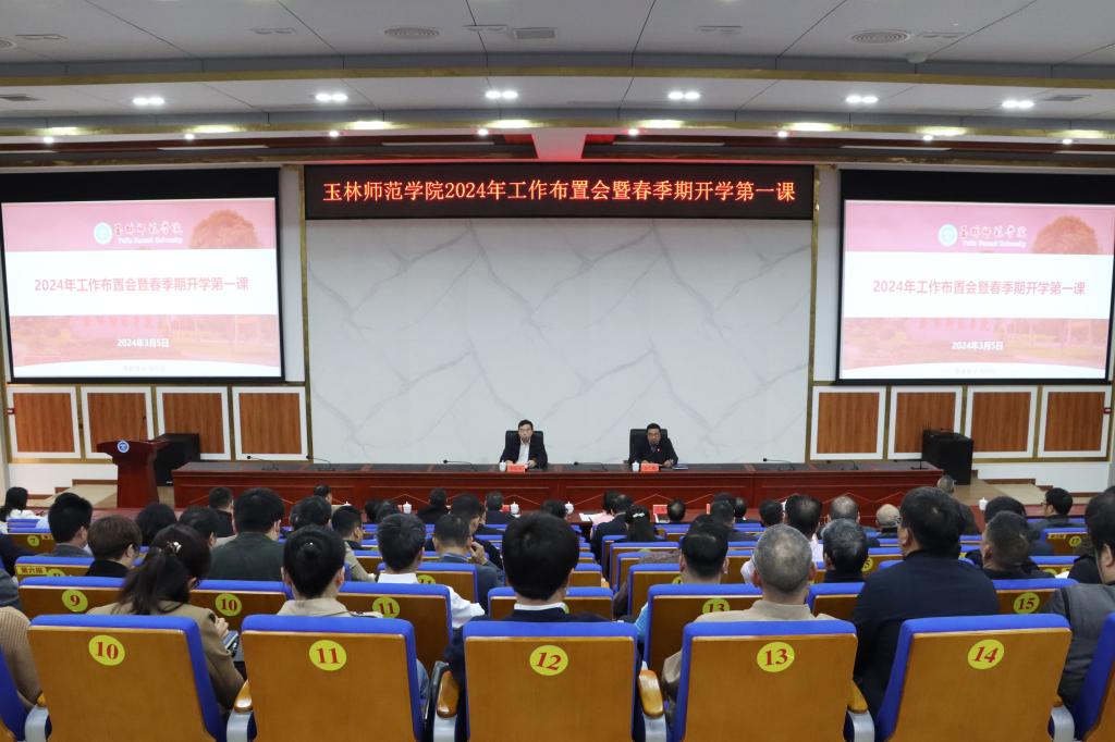 3月5日,我校在东校区新民楼D101会议室召开2024年工作布置会暨春季期开学第一课。学校领导李清先、李伟中、韦广雄、刘永建、庞国萍、李月发、石维有、许进杰,党委常委徐一周、唐彰新、高茂兵出席会议,全校科级以上干部参加会议。会议由韦广雄主持。