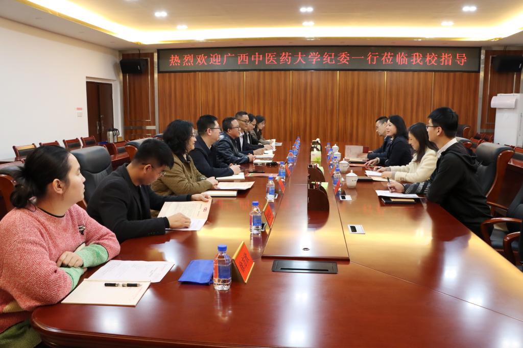 3月14日上午,自治区纪委监委驻广西中医药大学纪检监察组组长、广西中医药大学党委副书记、纪委书记覃宇环率该校纪委一行4人来我校调研交流。交流座谈会在新民楼B501会议室举行,我校党委常委、纪委书记李月发出席座谈会,纪委办公室相关负责人参加座谈会。