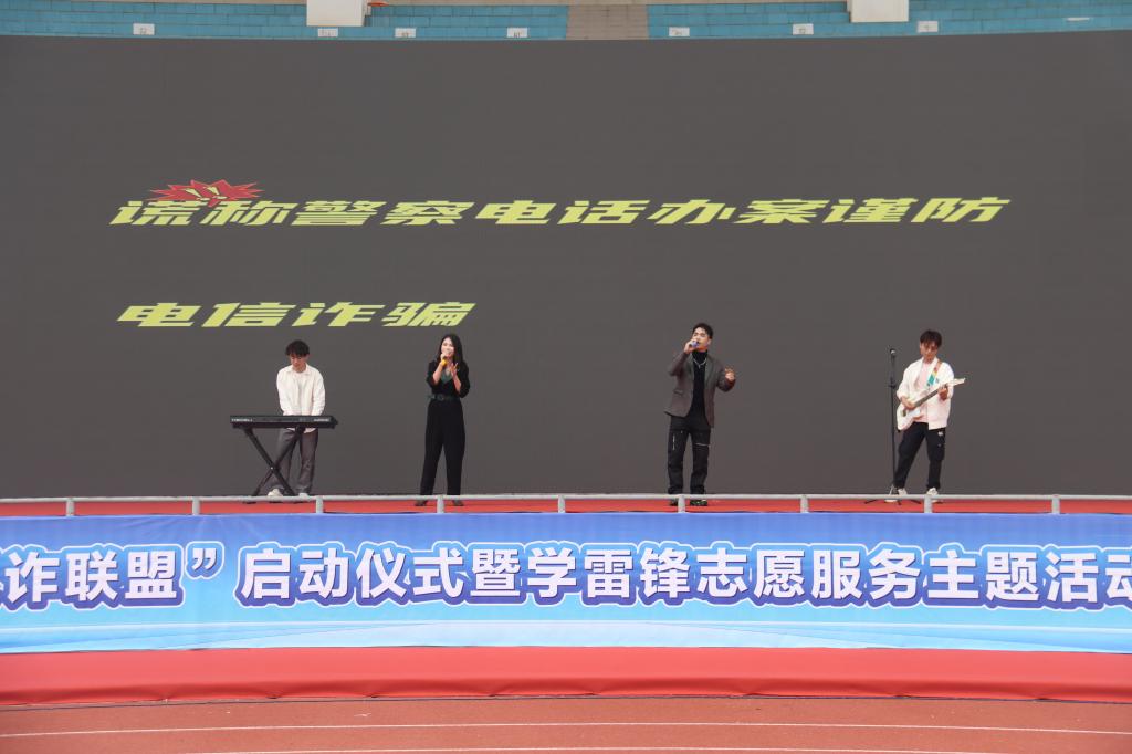 活动用形式多样的情景演出,艺术性地开展反诈宣传。原创歌曲《反诈》,将反诈知识巧妙地融入朗朗上口的歌词中。特警战术表演将全场的热烈气氛推向了一个高潮。会场周边还设置了反诈宣传展区,警察同志以有奖问答、趣味互动、发放资料、播放反诈科普小视频等方式带领师生进一步学习了反诈知识。