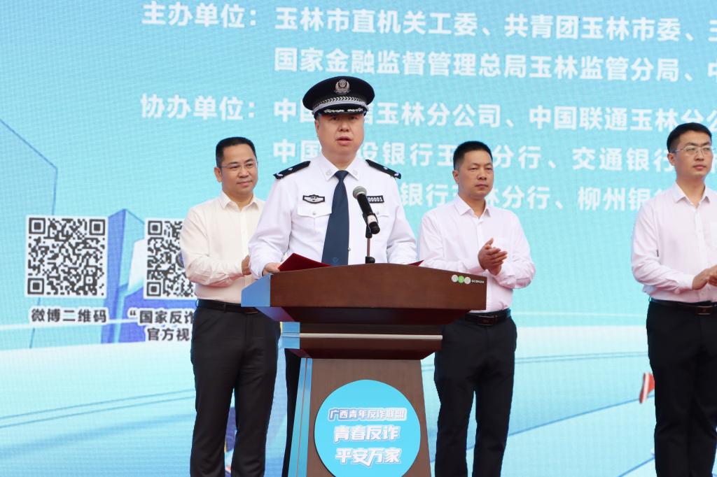 随后,王淮宣布玉林青年反诈联盟成立,出席领导为玉林市各界青年志愿者代表授旗,玉林市青年志愿者代表庄严宣读反诈倡议书。