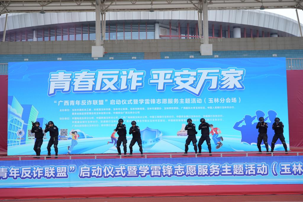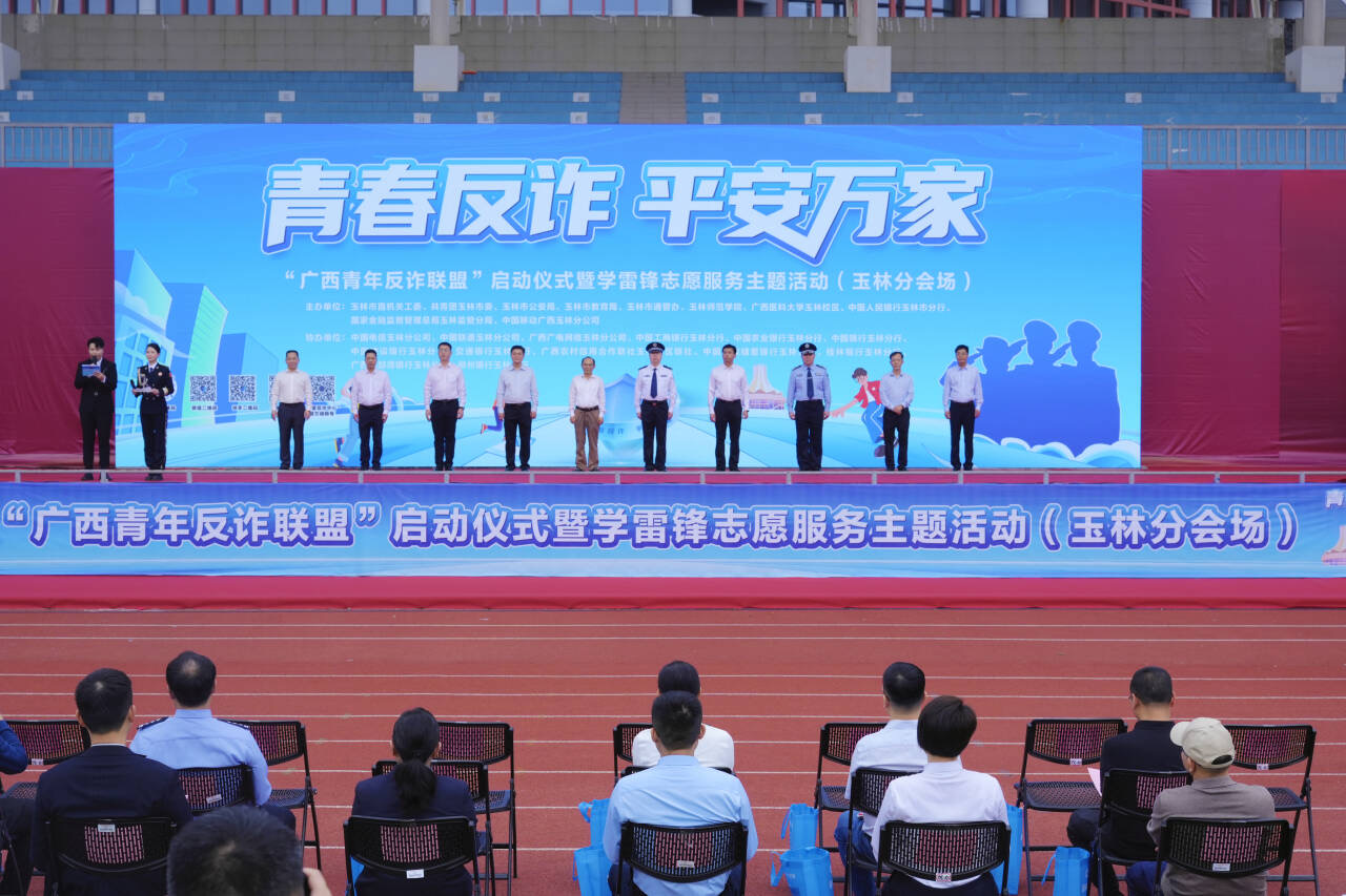 3月24日上午,“广西青年反诈联盟”启动仪式暨学雷锋志愿服务主题活动玉林分会场在我校举行。玉林市副市长、公安局局长王淮,校党委书记李清先出席活动。玉林各通信公司分公司、银行分行代表与我校师生代表共同见证“玉林青年反诈联盟”启动。