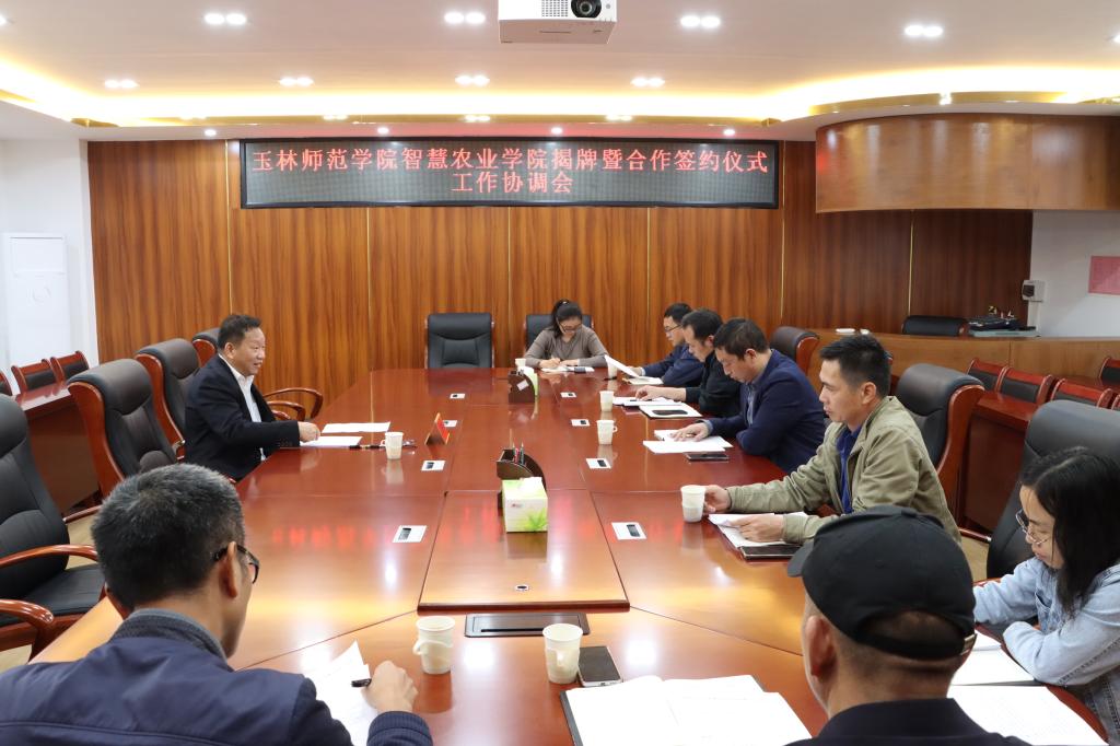 4月10日,学校在新民楼B509会议室召开智慧农业学院揭牌暨合作签约仪式工作协调会。副校长石维有出席并主持会议。党委办公室(院长办公室)、党委宣传部、保卫处、后勤基建处、智慧农业学院、团委等单位负责人参加会议。