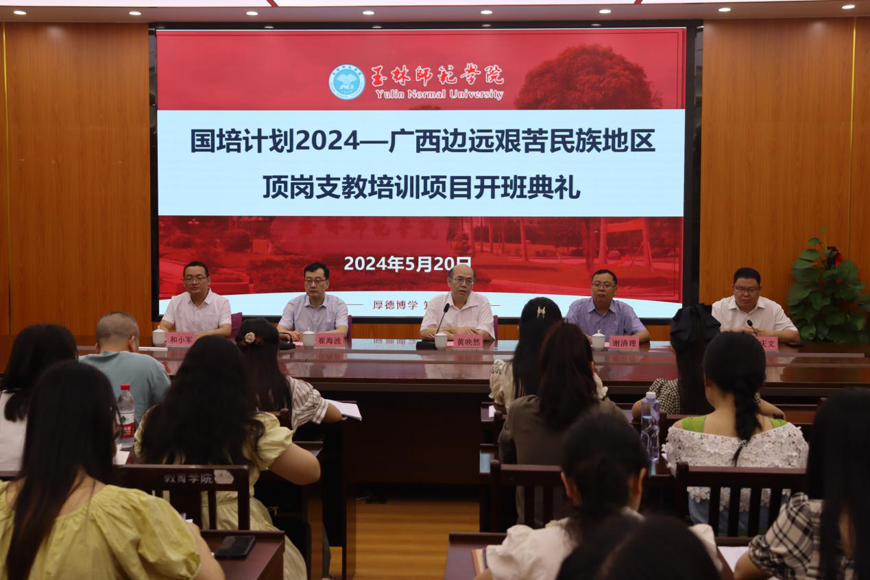 为进一步加强我区边远艰苦民族地区中小学教师队伍建设,5月20日上午,国培计划2024——广西边远艰苦民族地区顶岗支教培训项目于东校区明德楼310会议室开班。副校长黄映然出席开班典礼,教师教育学院院长、教育科学学院党委书记、副院长、班主任及全体学员参加开班典礼。
