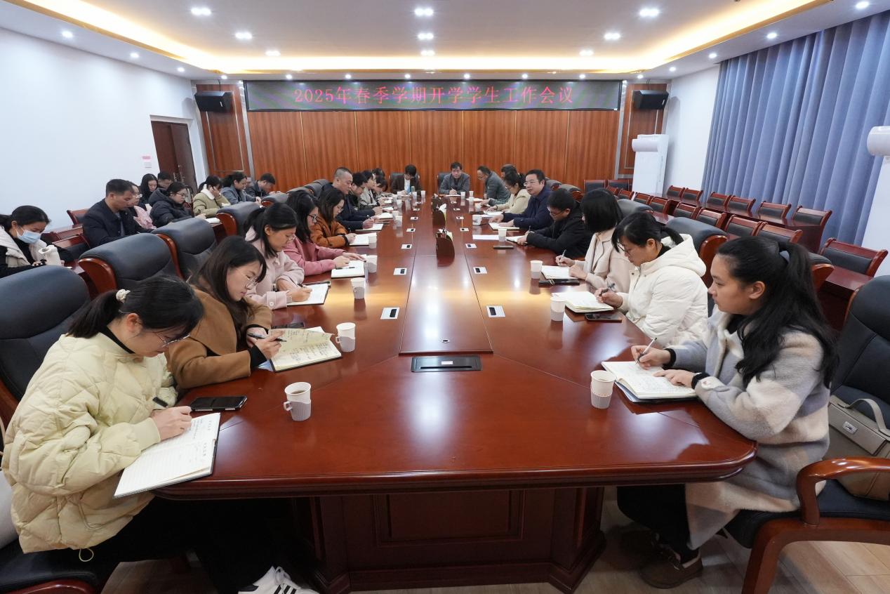 2月23日上午,我校在新民楼B501会议室召开2025年春季学期开学学生工作会议。党委副书记韦广雄出席并主持会议,相关职能部门负责人、各二级学院党委副书记及学生工作处各科室负责老师参加会议。