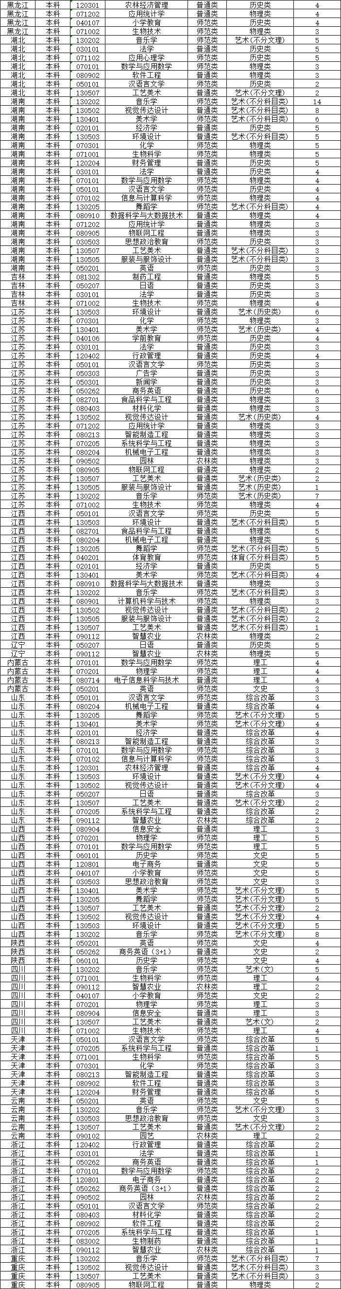 Q4 本科 物理类 15智农 090112 智慧农业 农林类 30 * * 30 * *